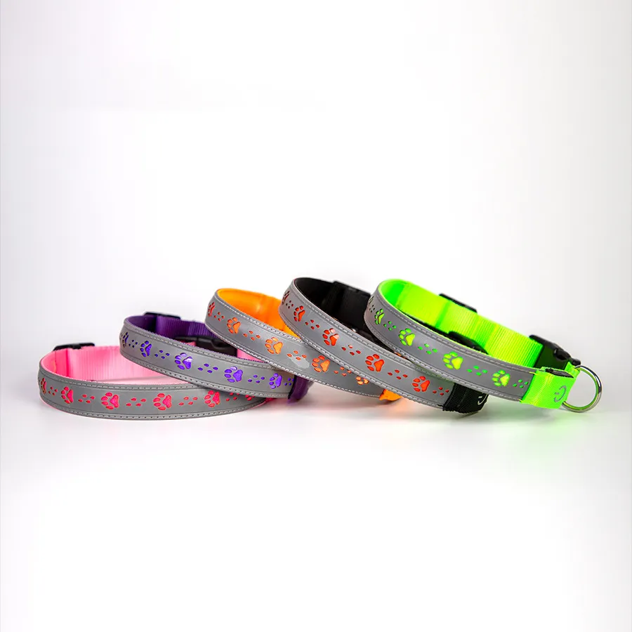 USB Rechargeable LED Dog Collar with Colorful Glowing Dot Pattern